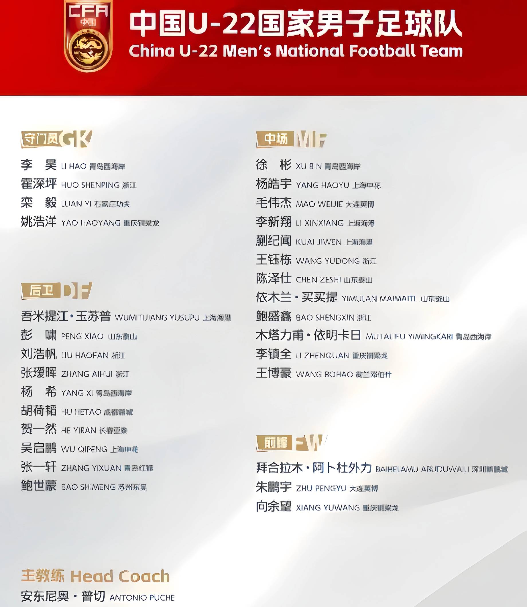 这支U22国足队内拥有,13名中超主力,4名中甲主力,2名中乙主力,所以这支球队征战U23亚洲杯值得期间的!