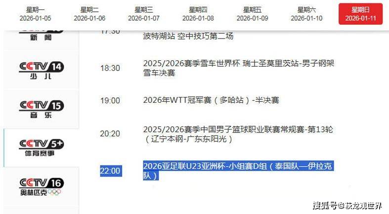 足球直播,欧洲杯直播,体育直播,球客直播,雷速体育,篮球直播,风驰直播,NBA直播,英超直播,足球比分,足球赛事,意甲,欧冠,世界杯,世界杯直播,村超,贵州村超,波胆,角球,串球,大小球北京时间1月11日,沙特U23亚洲杯D组第二轮进行两场比赛,当晚19:30,U23国足VS澳大利亚U23,截至本文发稿前,央视三大体育频道暂时没有直播计划,直播男篮比赛,但不排除临时改变直播的可能。当晚22:00,泰国U23VS伊拉克U23队,央视体育赛事频道CCTV5+将进行直播。